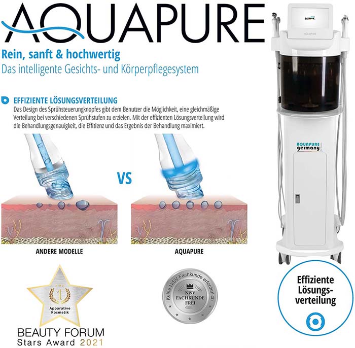Bei AquaFacial handelt es sich um eine intensive, nicht-invasive Gesichtsbehandlung. Sie besteht aus einer Kombination aus Hautreinigung und Versorgung der Haut mit nachhaltiger Feuchtigkeit zur Verbesserung des Hautbildes, und der Hautglättung, Pigmentausgleichung, bzw. Aknebekämpfung je nach Notwendigkeit und Hautzustand.